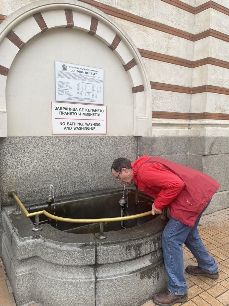 Sofia has water taps everywhere from mineral water springs. I saw lots of people filling water bottles. The water was warm at a few of the taps. Valentina filled her water bottle, so that was some confirmation that the water was safe.