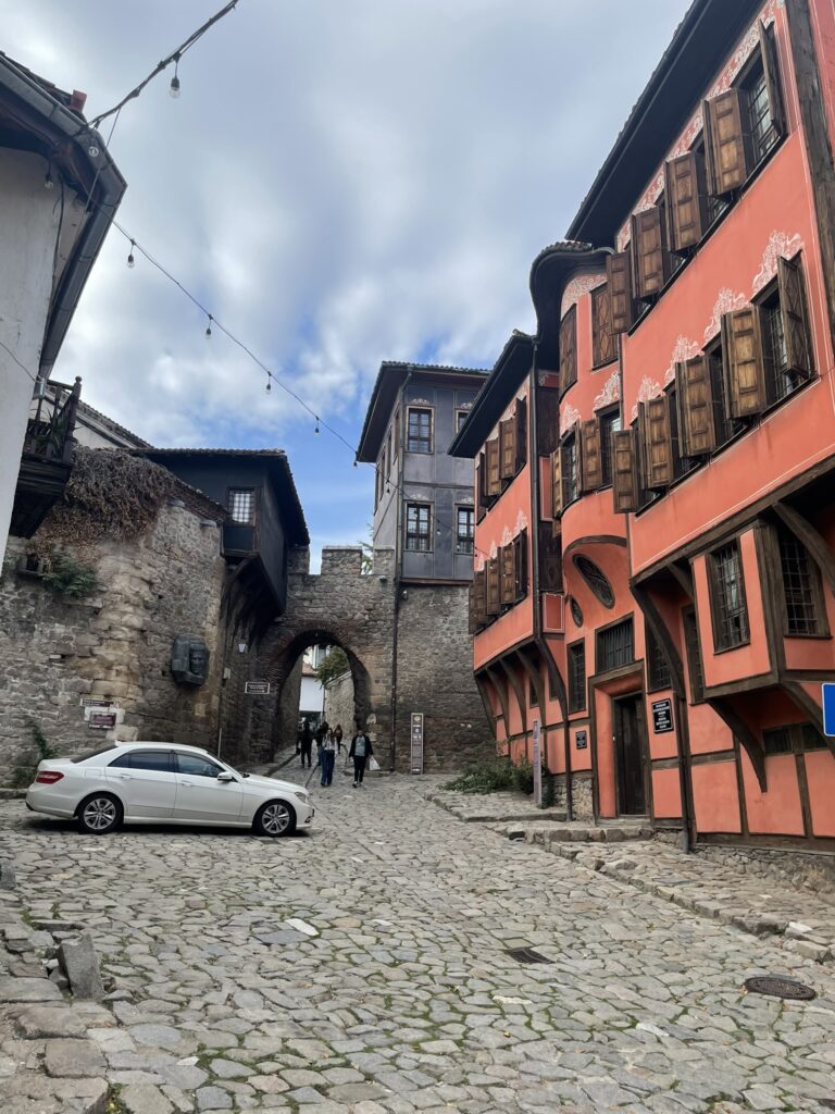 On our way to our next stay, we had a stop at a small city with an incredible church at the top of a hill. We then drove to one of the highest spots in the mountains and stopped at a large, abandoned building that looked like a spaceship. It was a Communist-era edifice. You could not go inside, but what an unusual sight at the top of a mountain. We also stopped at an open-air museum that was recreating life in the 1800s. It reminded me of Old World Wisconsin. I purchased a dried, plum-based candy made on-site the same way they made it 150 years ago. I also had my first drink of Boza, a wheat-based drink popular in Bulgaria. I liked it, but my fellow tour participants did not. We continued to the town of Veliko Tarnovo, the ancient capital of Bulgaria. Bilyana missed the turn in the old town to our hotel, and google maps took us on a crazy route to get back there through incredibly narrow cobblestone streets. We were here for two nights.