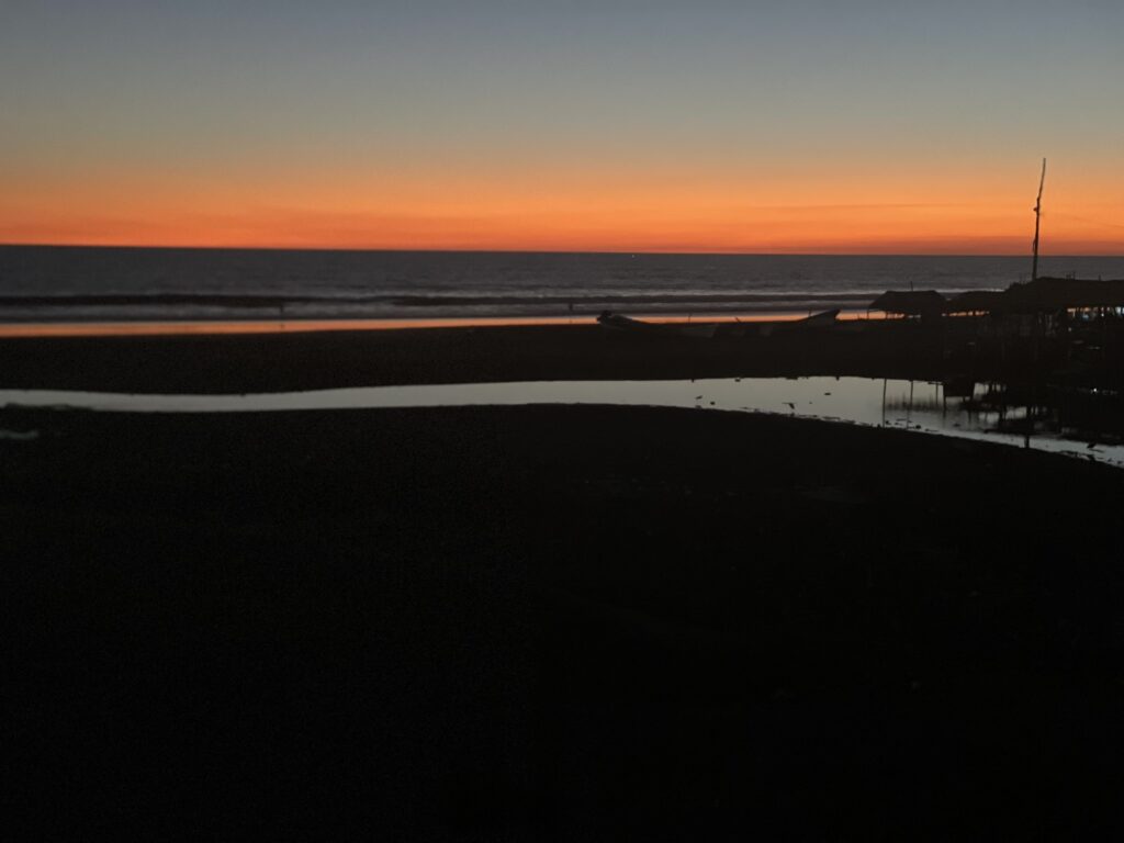 As best we could tell, we were the only guests at the hotel. We walked the beach. The beach itself was nice, but there were not many people. There were no foreigners, just locals. It was a black sand beach, due to the volcanoes nearby. We saw a wonderful sunset. Then it turned dark, and everything in the area shut down. Restaurants close by 7pm, there are no bars or anything else, so all you can do is hang in the hotel room and look out at the dark beach from the balcony.
